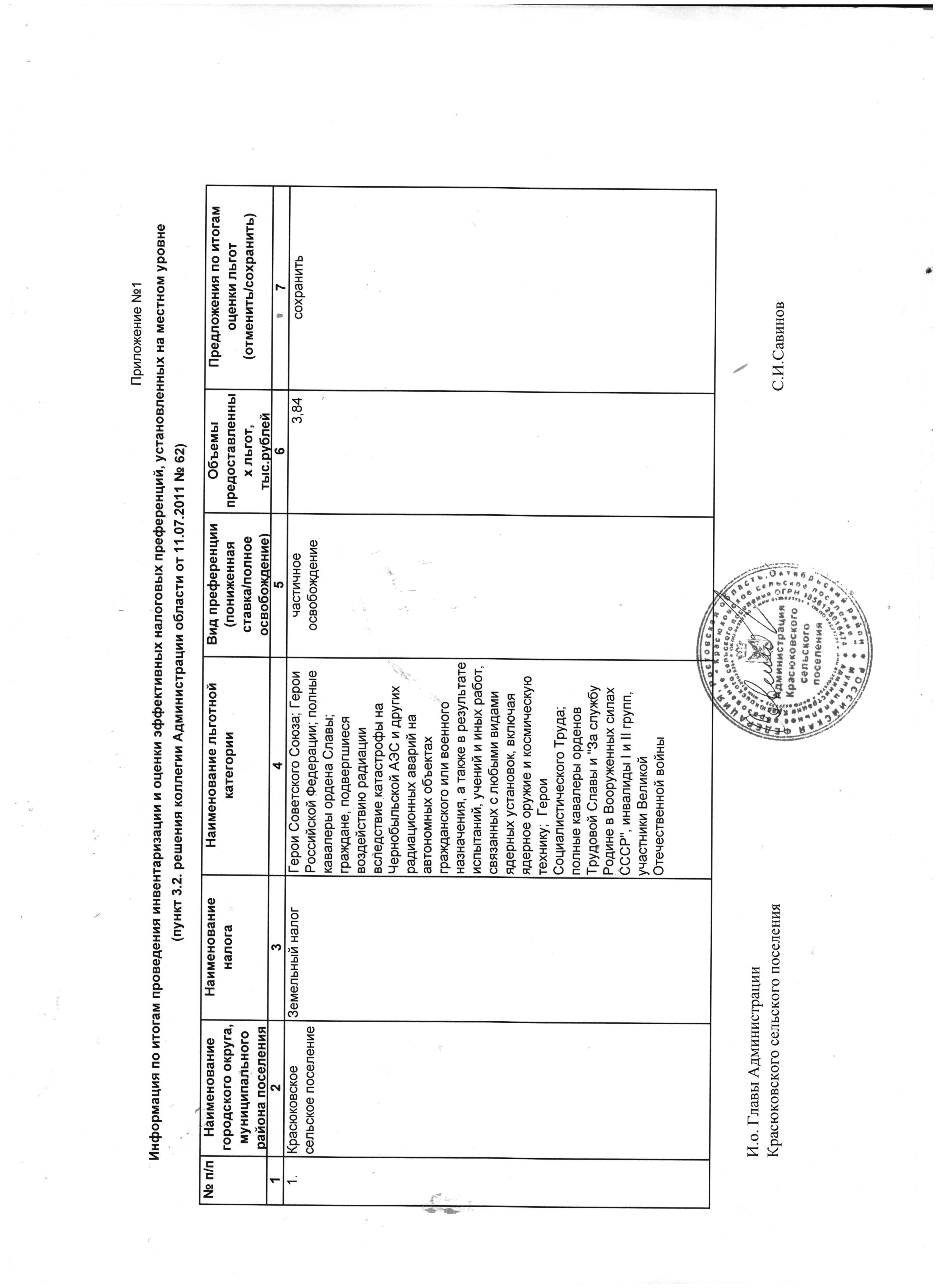 Информация по итогампроведения инвентаризации и оценки эффективных налоговых преференций,установленных на местном уровне